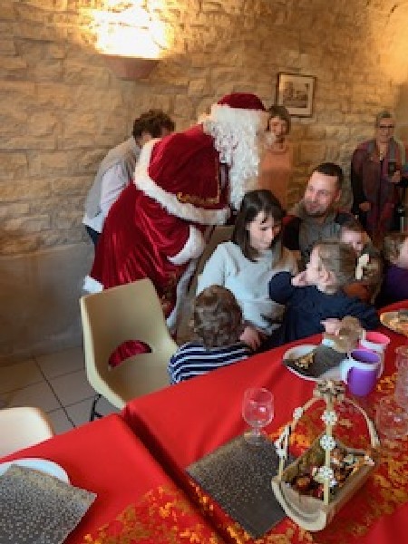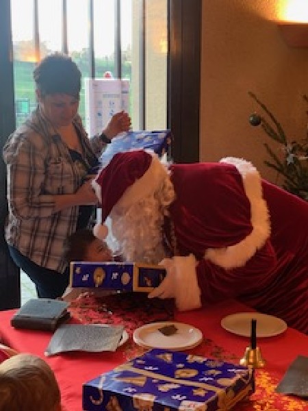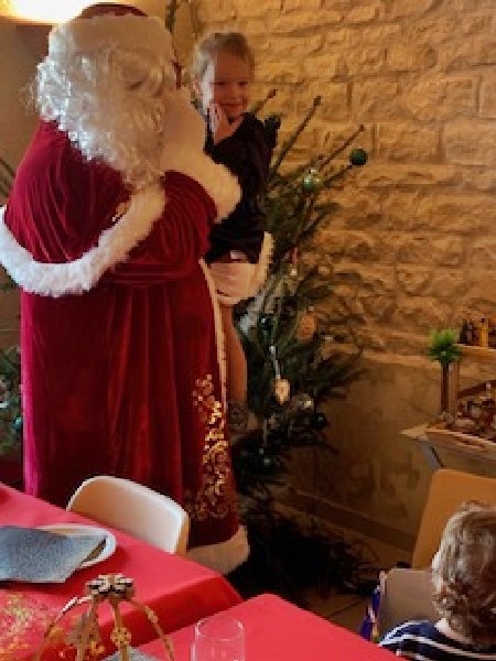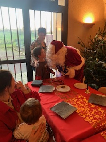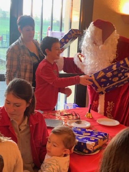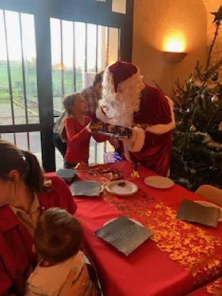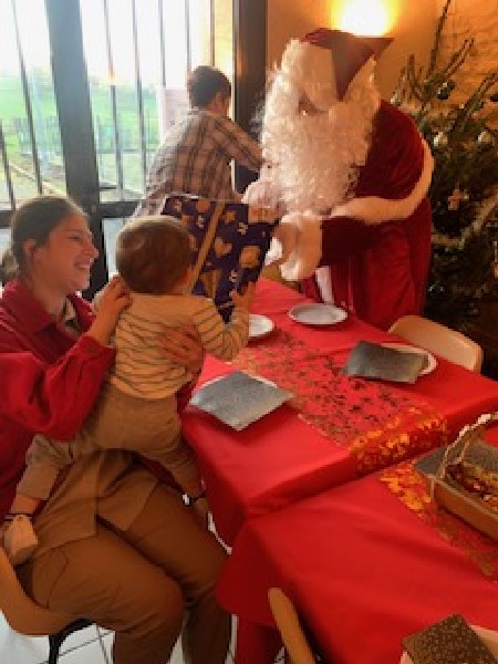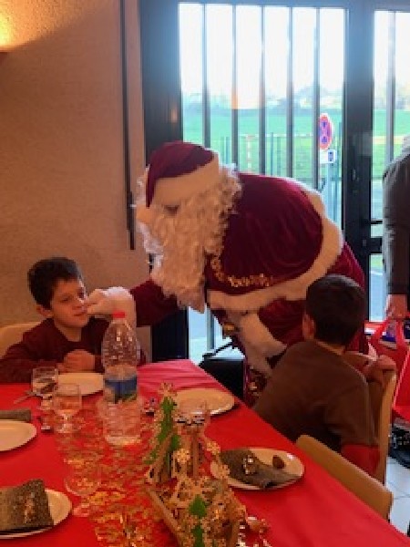 Les discussions vont bon train jusqu’à l’arrivée du Père Noël. Moments de joie et aussi de forte émotion pour les plus petits, vite dissipée à la remise des cadeaux