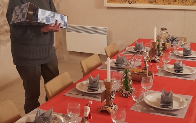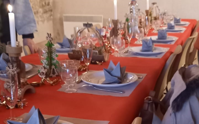 En effet quelques heures plus tôt, vers 12H00, les aînés et le conseil municipal (20 convives) s’étaient retrouvés autour de la table à l’invitation du Maire, pour le traditionnel repas de fin d’année.